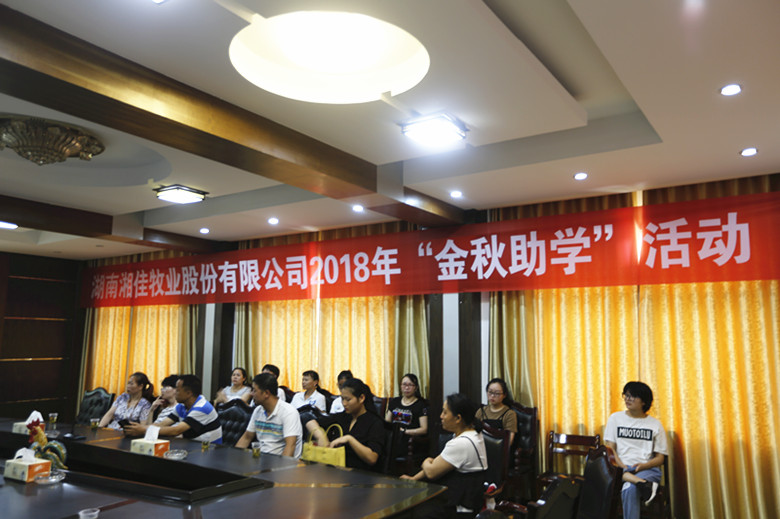 8月24日,湘佳牧業對2018年考上大學的職工子女以及困難職工子女舉行“2018湘佳牧業金秋助學”發放儀式。